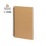 Libreta de anillas dobles metálicas con tapas blandas de cartón con hojas fabricadas a partir de extractos de piedra. Contiene 70 hojas color blanco y disposición a una raya, de elegante acabado de color natural. Logotipo Natural Stone en cada hoja. Incluye hoja interior en la que se explica el proceso de fabricación a partir de extractos de piedra. El material usado en la elaboración de la libreta es 100% reciclable y libre de cloro, con propiedades impermeables, altamente resistente y lavable, convirtiéndose así en una alternativa ecológica y sostenible frente al papel convencional, cuyo origen no es el tradicional ni proviene de los árboles. 70 Hojas