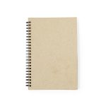 Libreta de anillas dobles A5 con tapas duras fabricadas a partir de hierbas recicladas. 80 hojas con disposición a una raya, de acabado kraft. Logotipo Grass Paper en hojas y contraportada. Presentado en una bolsa individual. El papel de hierba es una alternativa perfecta que garantiza la sostenibilidad en su proceso de fabricación, reduciendo el impacto medioambiental debido al rápido crecimiento y a la baja demanda de recursos necesarios para cultivarlo. Además en su elaboración se combina un 50% de base de hierba con otros elementos ecológicos, como madera reciclada. Portada Rígida. 80 Hojas