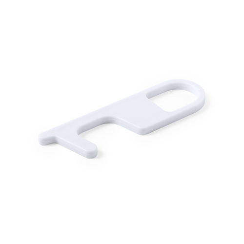 Llavero higiénico antibacteriano y anti-contacto, fabricado en resistente ABS de acabado sólido. Especialmente diseñado para evitar tocar con las manos superficies de uso común (manivelas de puertas, interruptores, grifos de uso público, cajeros automáticos…). Con cómodo troquel para el dedo y presentado en bolsita individual. Recomendado para marcaje en tampografía.Los productos con tratamientos antibacterianos son capaces de reducir drásticamente las cargas bacterianas presentes en las superficies de los materiales, gracias a la incorporación de agentes microbianos permanentes estáticos, con alta efectividad para inhibir y prevenir la contaminación bacteriana.Artículo de acuerdo al estándar ISO 22196, que determina la actividad antibacteriana en materiales plásticos y superficies no porosas, lo que permite conocer la efectividad de inhibición microbiana que tienen los aditivos sobre los objetos tratados mediante una evaluación cuantitativa.