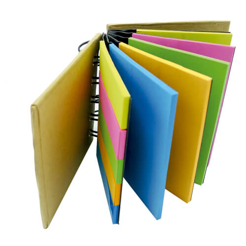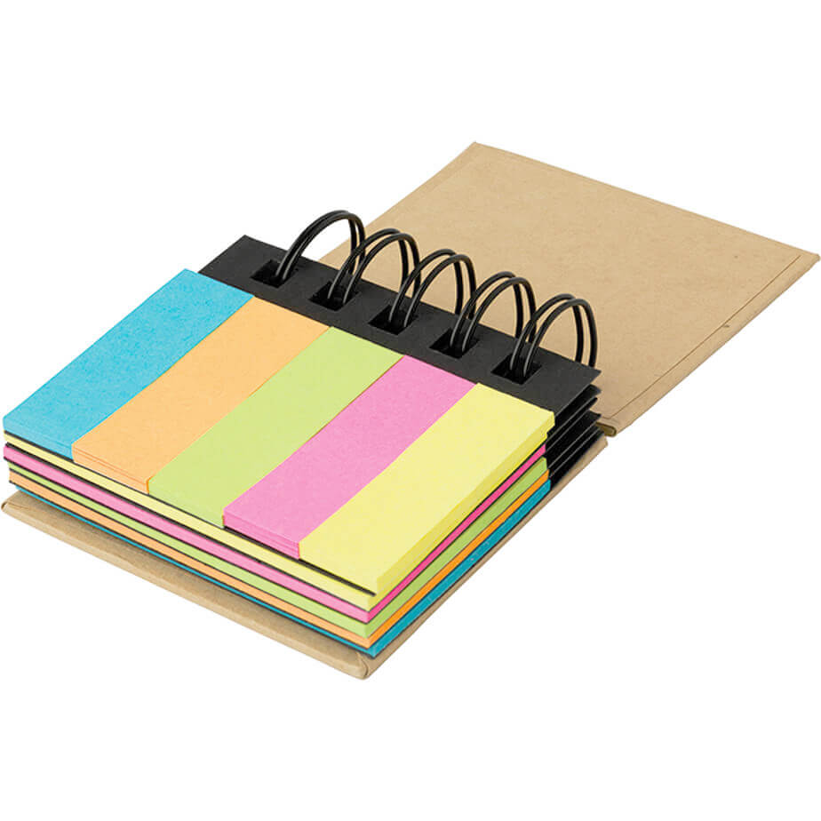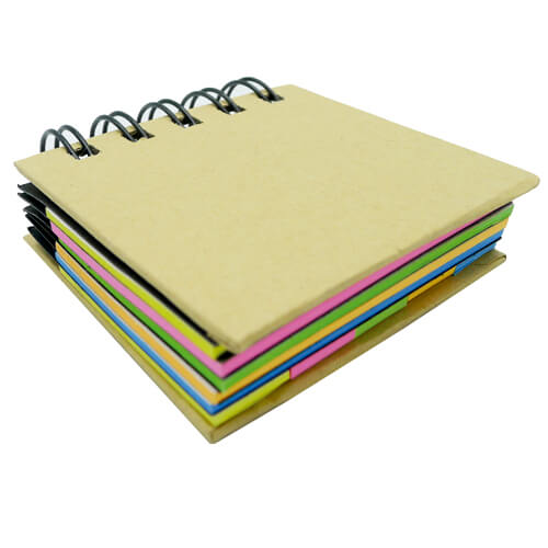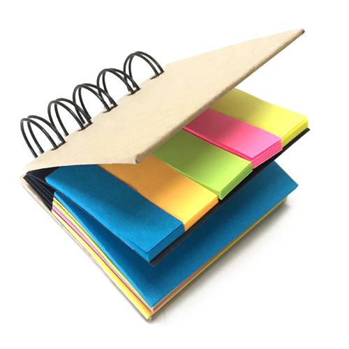 Memo set ecologico de oficina que incluye set de post-it de distintos colores. Anillado met alico doble cero.