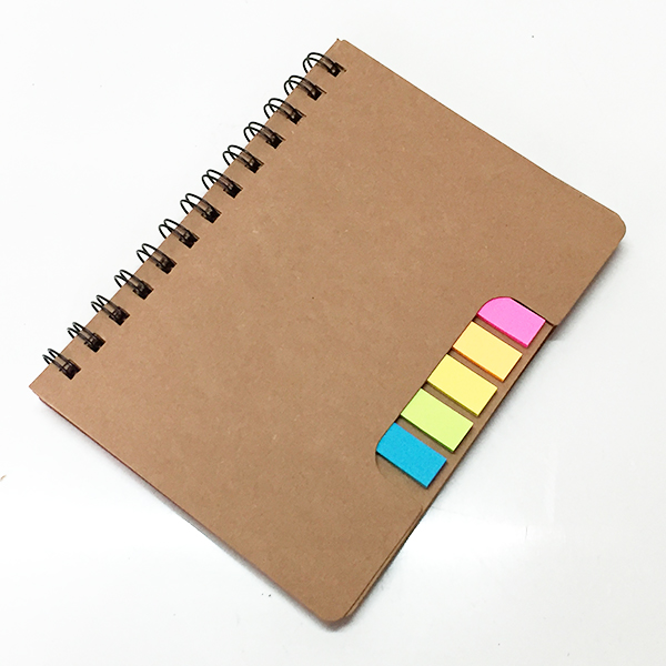Memo set ecológico libreta con anillado doble cero metálico. Incluye set de post-it y bolígrafo ecológico.