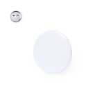 Excelente pin de color blanco de gran tamaño. Accesorio versátil para la estampación de multitud de diseños gracias a su base blanca, adaptable a cualquier tejido gracias a su imperdible situado en la parte posterior.