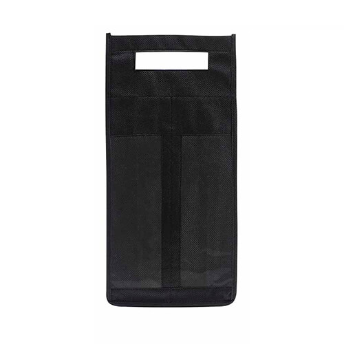 Porta botellas de TNT para dos vinos con ventanas de PVC y mango transportable. Separadores interiores de TNT. Tela de 80 grs.