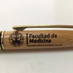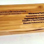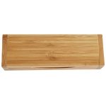 Set de escritura de madera de bambu. Boligrafo + Portaminas de finas terminaciones doradas dentro de estuche de madera rectangular.