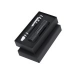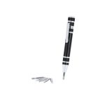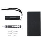 Set de Herramientas Multifuncional con Linterna y Destornillador en aluminio. Incluye:- Destornillador con 6 cabezales imantados: 3 planos y 3 de estrella, equipado con un práctico clip metálico que facilita su enganche y transporte.- Linterna LED con 9 LEDs, alimentada por 3 pilas AAA (no incluidas). Incorpora cordón para muñeca, ofreciendo comodidad y seguridad en su manejo.Presentado en caja negra. Multiherramienta 6 Accesorios. Linterna 9 Ledes. 3 Pilas AAA No Incluidas